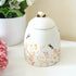 Introduce elegance and whimsy into your kitchen with this beautiful Pink Floral Bee Storage Pot. Made of ceramic, this jar features a delicate a dusky pink floral design, accented by cheerful yellow blooms. The domed lid is adorned with a lifelike raised bumblebee adding a sweet finishing touch.