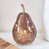 This elegant bronze crackled glass pear ornament with built-in LED lights blends natural elegance with subtle illumination. Crafted with a refined crackled glass design and gold stalk, this charming pear will add a warm glow to enhance any interior with a delightful woodland-inspired charm, making it an exquisite addition to your home décor.