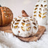 Our cream cut-out LED pumpkin effortlessly combines chic design with a quirky twist. Featuring a rustic, distressed finish, this elegant decorative tabletop ornament will fit perfectly into your home living or kitchen tabletop decor, adding a warm and welcoming glow. The perfect home decor styling piece for the autumn season.