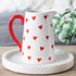 Add a pop of colour to your home with our charming Love Heart Ceramic Jug Vase. Featuring an elegant all-over heart print and a striking red handle, this white vase is the perfect vessel for your favourite Valentine's Day flowers. Express your affection in style with this sophisticated and exclusive piece.