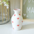 Introducing our Mini Heart Bud Vase, the perfect addition to add a touch of romance to your décor. Its compact size is perfect for displaying a single stem or small posy offcuts. Made of white glazed ceramic, it features a delicate heart pattern and a traditional vase shape for an elegant look on any windowsill, bedside table, or bookshelf.