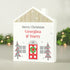 Crafted from wood, the house features a fun Christmas design, making it the perfect addition to any festive display.