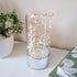 Add a touch of contemporary elegance to your space with the Silver LED Glass Tube Light. This clear glass tube, standing 20cm tall with a chrome-finished base, features delicate silver wire and ball bearings that shimmer beautifully when illuminated by warm yellow LED lights. Battery-operated for versatile placement, it offers a refined alternative to traditional table lamps, blending glamour and modern style effortlessly.