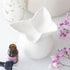 This white ceramic oil burner combines elegance and subtle artistry with its butterfly-shaped bowl topper, adding a graceful accent while safely holding your fragrance oil. Its white, sculptural form and classic silhouette make it an exquisite addition to any space, perfect for cultivating a serene and refined atmosphere in your home.