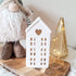 Enhance your festive home decor with the elegant white ceramic LED house ornament. This charming glazed ceramic house features cutout windows and a love heart detail and is perfect for adding a touch of sophistication to your home.