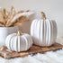 Our stylish white ceramic pumpkin brings a modern twist to your autumn decor. The sleek white finish makes this ornament a standout piece in any home setting. This ceramic pumpkin is not only visually pleasing but also robust. Whether you're embracing the seasonal spirit or simply adding a touch of elegance to your home, this piece is a perfect choice.